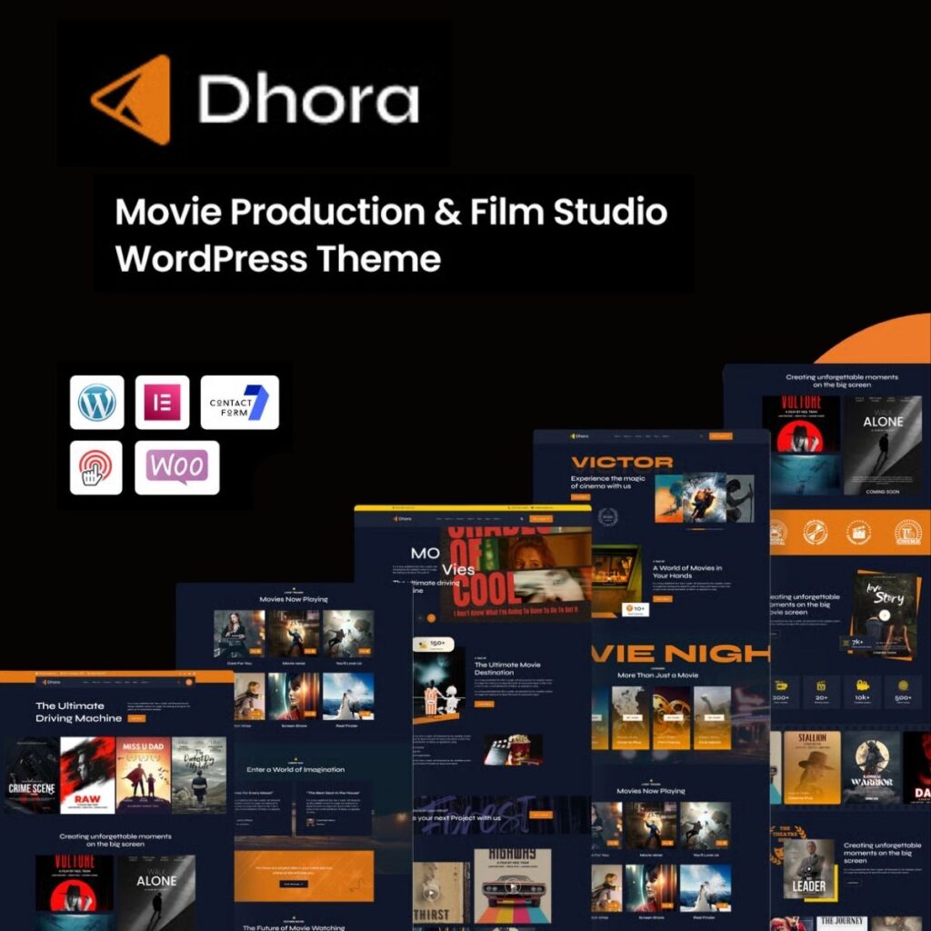 Dhora – Movie Production & Film Studio WordPress Theme is a premium WordPress theme that delivers exceptional design quality and powerful functionality for your website. This professionally crafted theme combines modern aesthetics with user-friendly features, making it perfect for businesses, agencies, portfolios, and personal websites.