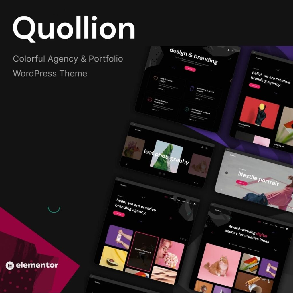 Quollion – Colorful Agency & Portfolio WordPress Theme is a premium WordPress theme that delivers exceptional design quality and powerful functionality for your website. This professionally crafted theme combines modern aesthetics with user-friendly features, making it perfect for businesses, agencies, portfolios, and personal websites.